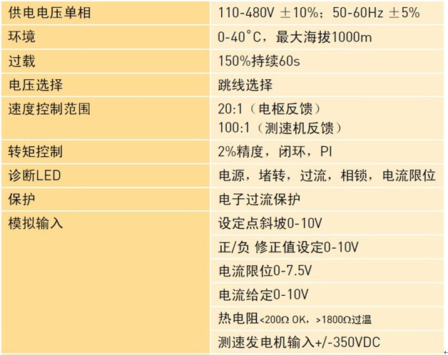 單獨的控制回路、大量的特點以及非常線性控制回路使得 512C成為單機或多傳動應用的理想選擇。 512C可驅動永磁直流電機和他勵直電機, 提供速度和轉矩控制模式。可使用”開環” 電樞電壓反饋方式或直流測速發電機反饋 以提高調節精度和速度范圍。防護等級IP00.