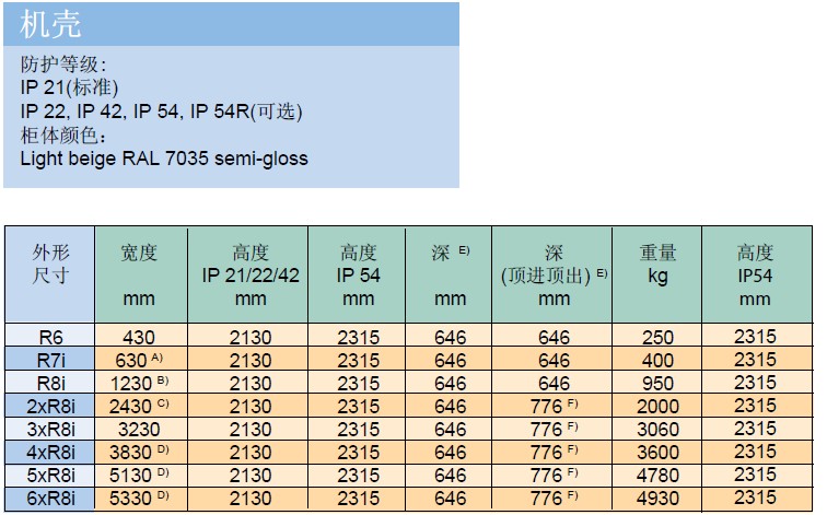 功率等級和外形尺寸