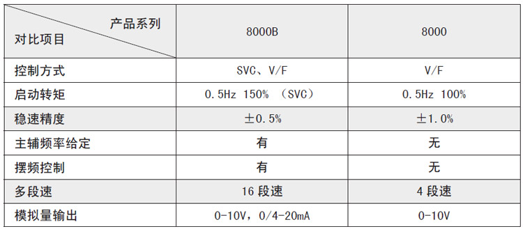 8000B系列和8000系列的功能區(qū)別如下表: